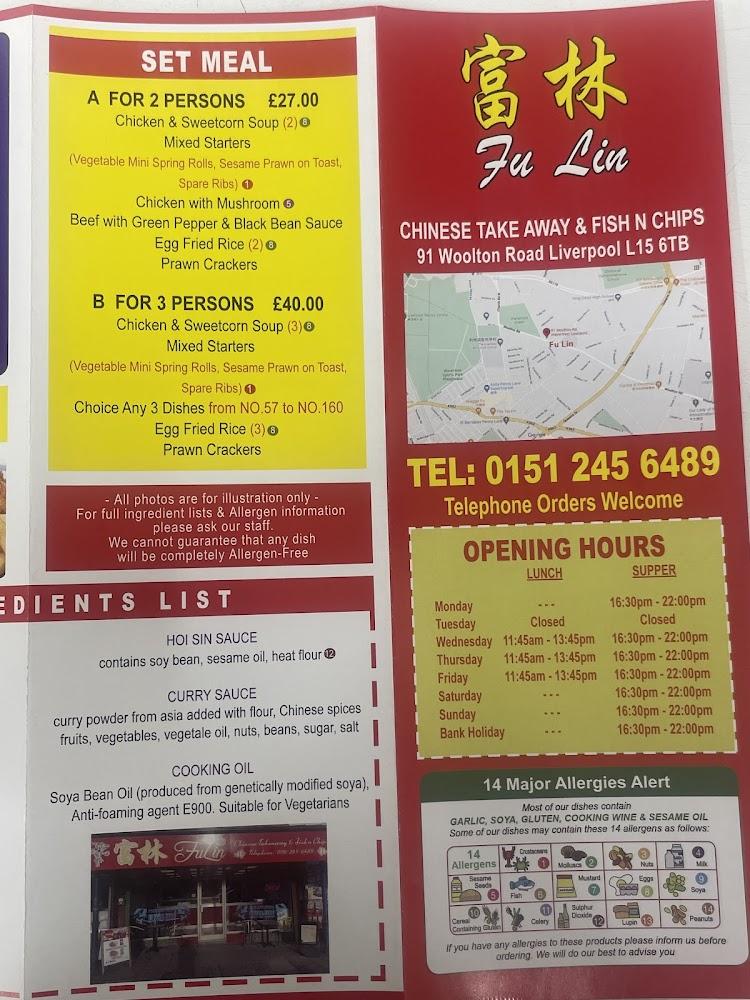 Fu Lin is prominently located at 91 Woolton Rd, in the charming neighborhood of Woolton, Liverpool. This takeaway spot is more than just a place to eat; it's a community favorite that has garnered praise for its wide-ranging menu that blends classic fish and chips with Chinese delicacies. The location is easily accessible, with free parking available, making it a convenient stop for locals and visitors alike.